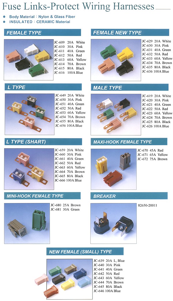 Glass Tube Auto Fuses, Ceramic Auto Fuses, Plug In Fuses, Fuse Links, In Line Fuse Holder, Fire Extinguisher, Flasher & Realy
