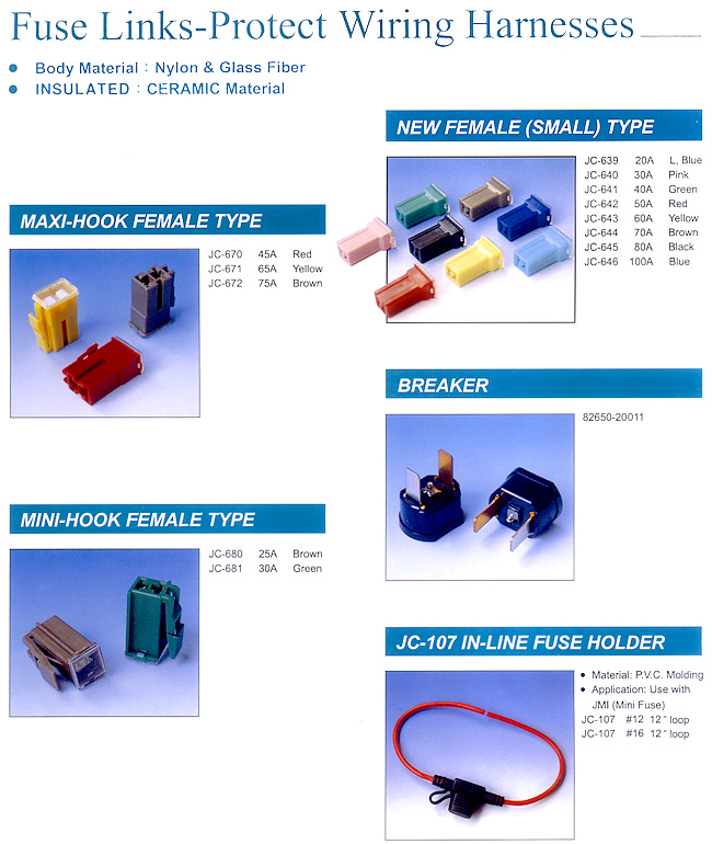 Glass Tube Auto Fuses, Ceramic Auto Fuses, Plug In Fuses, Fuse Links, In Line Fuse Holder, Fire Extinguisher, Flasher & Realy
