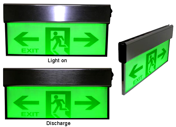 Single side slim emergency illuminated sign, and with green color LED source.