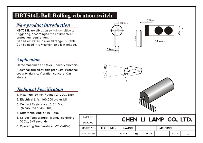 HBT514L are vibration switches sensitive to triggering, according to the environmental protection requirement.