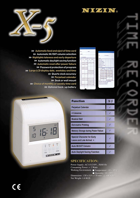 - Automatic feed and eject of time card.