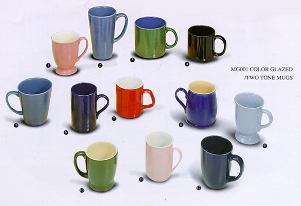 Wide variety of stoneware mugs for gifts and promotional purposes.