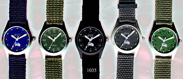 Brass case with nylon strap, 3 ATM water-resistant, Japan movement.