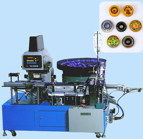 - High speed auto arraying and feeding system requires no operators to feed and array the skating wheels manually for printing.