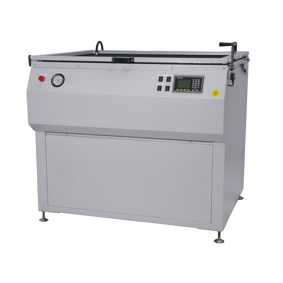 - Equipped with dustless,oilless and low-noise vacuum pump and highly-tensile,UV-proof rubber board。Creates a vacuum evenly and rapidly。Quick and immediate contact between film and screen,very smooth contact surface。Good for printing images made up of extra-fine and high density lines down to direct,indirect or direct/indirect screens in a dustless room.