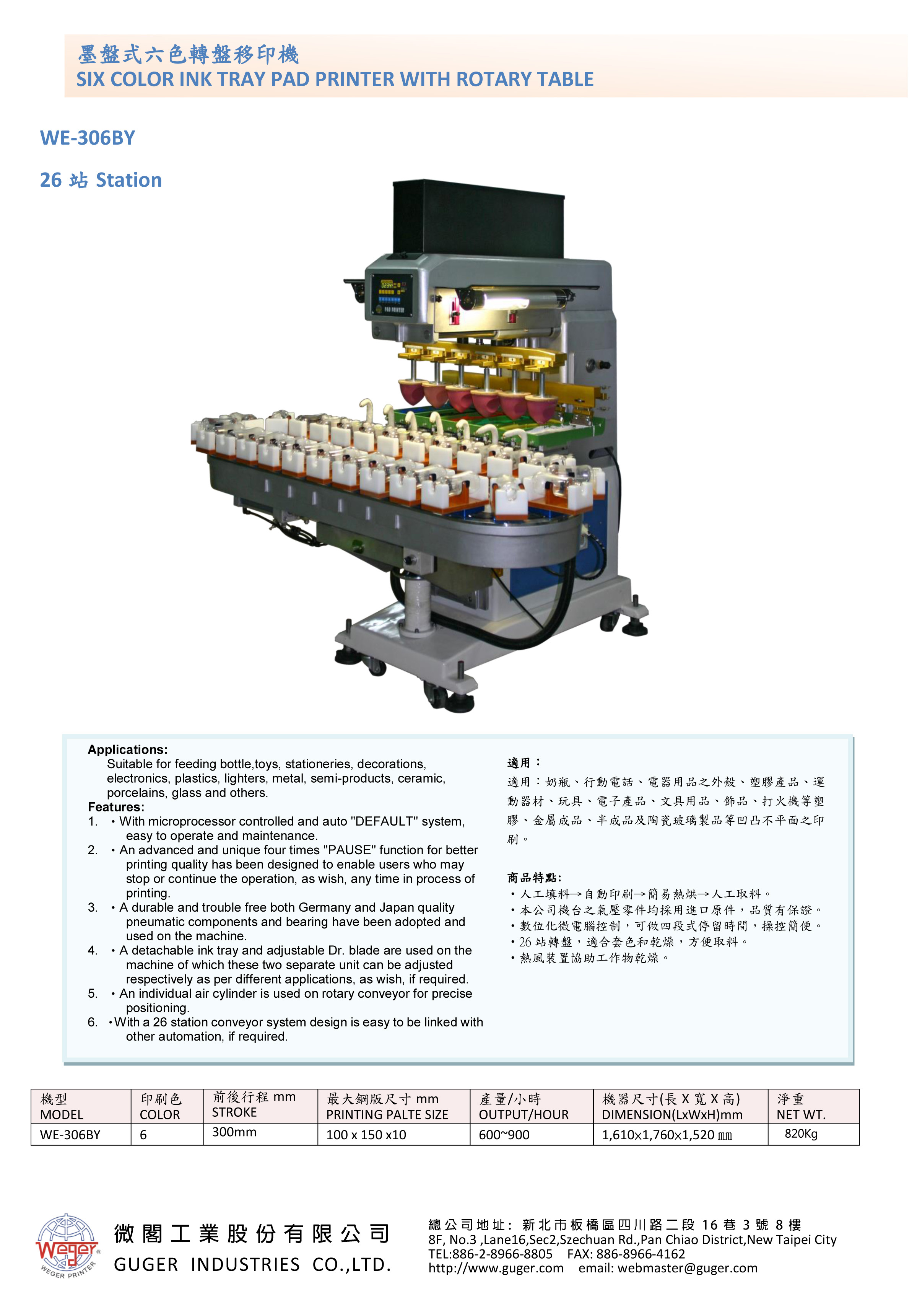 - 26 station rotary table is used for multi-color printing, dry and easy unloading.