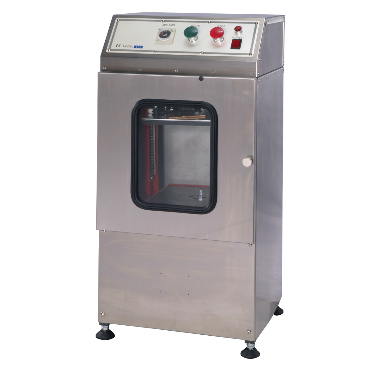- Completely enclosed. No accessible exposed moving part as with conventional mixers.Machine will not operate with door open.
