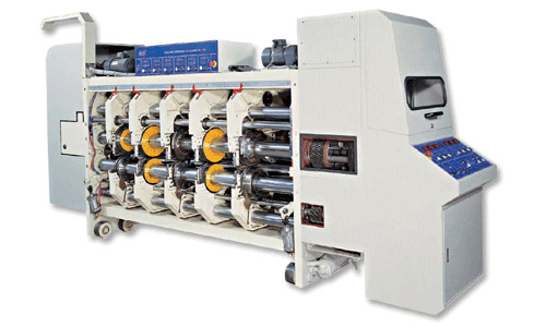 The slotting unit, printing unit and feeding unit are operated under a pneumatic coupling process to enable the machine frames to undertake a rapid and energy saving opening and closing process. And the frames of slotting unit and feeding unit can be locked at the same time to enable a more stationary operation.