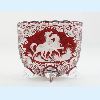 Hand engraved glass bowl, red staining