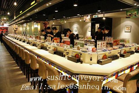 - Mainly Featured Products: Rotary sushi conveyor belt, single track Sushi conveyor belt,Single-deck Sushi conveyor belt with glass cover, double rotary conveyors, hot and cold rotating conveyor belt, ladder-type rotary conveyor belt, rotary hot-pot conveyors, steam food delivery platform, teppanyaki ,sushi rice ball machine, Kitchen&Table Ware, bar stools, etc..