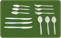 PLA Starch is made from renewable raw materials like corn starch. Biodegradable PLA starch cutlery includes knife, fork, spoon and cup. (There are two kind of eco-friendly PLA cups: PLA clear cup and PLA liner paper cup.) All of the PLA Starch products have received the highest safety standard, and have been proven the follwing characteristics: