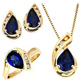 Sterling Silver synthetic Sapphire & Diamond Cubic Zircon Sets- ring, earring, necklace.
