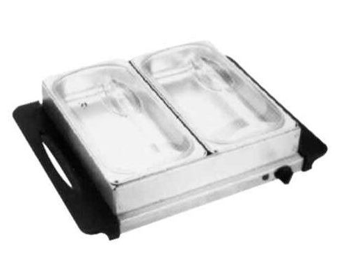 1)S/S buffet server great for entertaining 2)Food stays hot .fresh and ready to serve 3) Two removable stainless steel warming pans 2*2.75L; 4) Warming tray can also be used separately 5) Adjustable thermostat 6)Keeps food at a safe serving temperature 7) power indicator light 8) Cool touch handles and non-skid feet