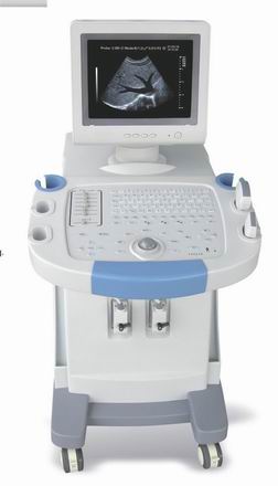This device is equipped with 3.5MHz electronic convex, 80 elements high-sensitive frequency conversion probe(it can choose to connect with 5-7.5MHz high frequency probes) and it has long life but little noise. It has used various image processing technologies, such as variable aperture, multi-section electronic focusing, logarithmic compression, multi-section STC control, dynamic echo filtering, image enhancement, line correlation, frame correlation, linear interpolation; As a result, it has high sensitive images, rich gray scales, clear layer and high resolution. It has B, B/B, 4B, 8B, B+M and M imaging modes and four magnification rates (x1.0, x1.2, x1.5, x2.0), which is applied to diagnosis on viscera in abdomen and gynecology and obstetrics, also to general examination and diagnosis on heart. It can choose to connect with high frequency probes to inspect and diagnose on superficial tissues and body cavity. It has the measurements of distance, area, volume, circumference, HR, gestational week (BPD, GS, CRL, AC, HC and FL) etc. It has functions of cine storage and replay, gama calibration, pseudo color display etc. And many note functions, such as name, sex, age, diangositc date, case number, various body marks, full-screen character note.