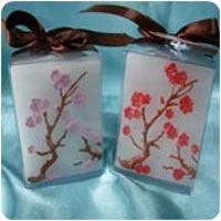 The Pillar Candle is scented and embossed with beautiful plum.