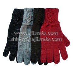 acrylic knitted glove with purl with handmade flower (TD9-02770)