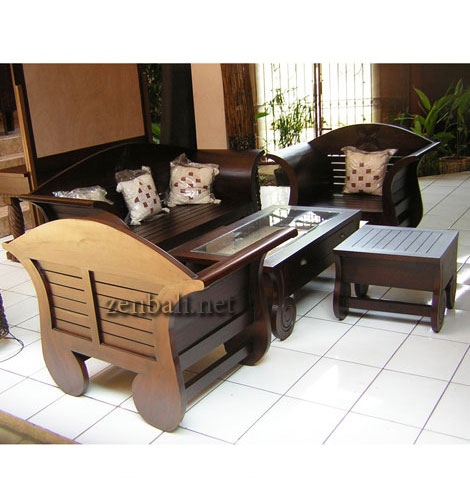 flower carved living room set made from mahogany wood and dark brown antique finishing. contain 2 single sofa arm chair, 1 sofa 3 seat, 1 stool, 1 coffee table with glass at the top and custom cushion.