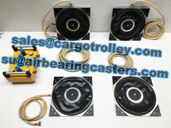 Air bearing casters models selected by the weight that needs to be transported, the numbers of air modules, the size of the heavy duty loads.
