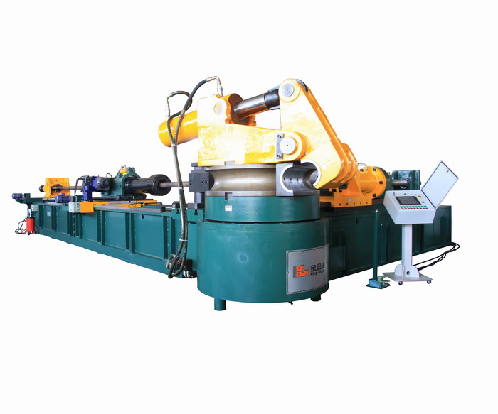 Heavy Duty Pipe Bender-Without Bending Arm Style, CNC Pipe Bender, which controlled by PC based industrial computer, uses special softwares and technology. They are driven by multi-axis of servo motors and servo hydraulics. Advanced automatic functions, such as feeding, angle rotating, tooling change, read drawings, edit and modify programs, self-correcting rebound data, self-correcting elongation data, material loading and unloading, inspecting tubes, failure diagnose, are available in these machines. They are mainly used in ship building, ocean engineering, petrol-chemical industry, boiler, nuclear industry and so on. Max. capability of this series of machines is OD 450 mm with min. radius 1.5D. The machine is able to bend thin/thick wall tubes and alloy tubes into complex 3D part without heating. High quality parts, high efficiency, high accuracy, high automatism, low cost and low labor intensity are the advantages of these machines. It is the ideal equipment of ship building, ocea