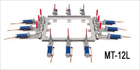 This MT-12L Pneumatic Stretching Device are ideal for screen fabric spreading on the frame. This unit consists of various clamps for air stretching the screen fabric. Its outstanding stretching effect will assure highly uniform tension the entire frame to meet with precision screen making requirement. The unit is standard constructed of 12 PCs of clamps and comes with high pressure manifold, pressure reducing valve, filter and air inlet speed regulation valve.