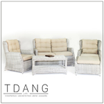 Set includes 1 Sofa, 2 Lounge chair, 1 Ottoman and Dining table