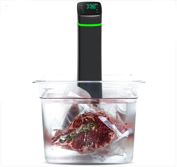 sous vide is a new cooking way which cook food with low and constant temperature.Seal the food in Vacuum bag,then put it into the water(use a tank contain water with sous vide),set the cooking time and temperature you want on the sous vide ,then it will start to cook automatic .It will help you cook food delicious as the high-end restaurants food in your home kitchen