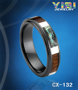Name: 6mm Black Ceramic Ring with Silver , Wood and Abalone inlaid for Lady