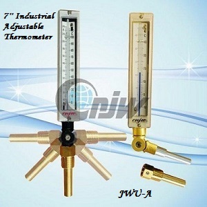 The main advantage of this adjustable thermometers lies in its readability and adjustment . The length of the case is 7". The PLASTIC FRONT PANEL , prismatic tube and white V-shaped metal scale board highly improve the visibility and beauty of it .