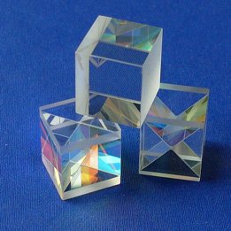 Beamsplitter Cube is a more sophisticated type consisting of two right- angle prismscemented together at their hypotenuse faces.The cemented face of one prism is coated.Before cementing, with a metallic or dielectric layer having the desired reflectingproperties, both in the percentage of reflection and the desired color. The absorptionloss to the coating is minimal and transmission and reflection approach 50%.