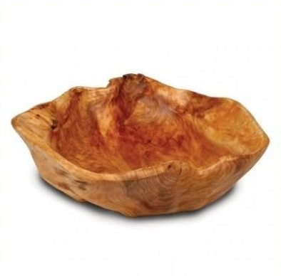 Each of our hand carved root bowls is uniquely beautiful and stands alone as a natural work of art. These fantastic pieces are carved from a species of Chinese Fir called Shan Mu, which grows abundantly in the mountains of central China. The stumps left by logging are reclaimed prior to replanting and hand-carved by local artisans into the shapes in this collection. They are beautiful and practical items that bring their own unique organic charm into the home. Each piece is a one-of-a-kind. Food-safe lacquer
