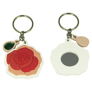 Rose design key chain with mirror is well known for amazing quality, novel design and competitive price, used to decorate your keys. It can help you spot your keys and make your keys stand out. Customized designs, logos and sizes are welcomed.