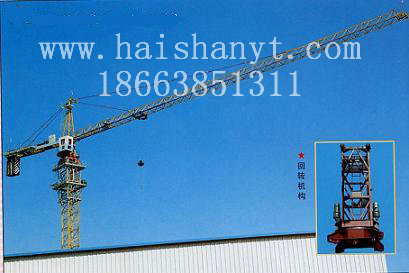 1.2 High working speed, good speed adjusting performance, stable operation and high working efficiency. The lifting mechanism adopts tri-speed motor and single reduction ratio reducer, and could realize functions of low speed with heavy load and high speed with light load, it max speed could reach to 65.5m/min. The luffing carriage could move along the horizontal boom to realize the radius changing, and it is easy to be installed. Slewing mechanism adopts planetary gear reducer, equipped with moment limiting type coupling, and it has functions of high lifting capacity, stable startup, reliable working condition, and working normal in wind, etc.