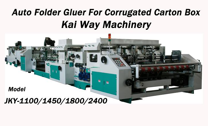 Kai Way JKY series auto folder gluer for carton box apply for corrugated carton and box such as flap top box, folding hook box, four-corner and six-corner box etc.