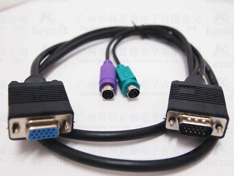 The 3-in-1 cable design combines the VGA monitor and PS/2 keyboard/mouse components into one cable that is split apart at each end.
