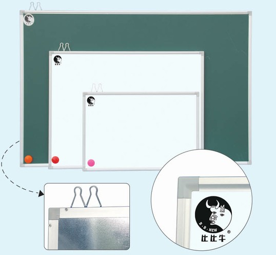 Features:Fine galvanized sheet as back board; top grade panel enables smooth writing and thorough erasion; specially formulated glue prevents layers from splitting up; movable pen tray and hooks; sustains more pressure with reinforced comb cardboard inside. Aluminum frame with integral vertical angles; bent hooks of spring steel wire ensure no noise made while writing. Whole board is firm and hard, brings wonderful tactual sensation.