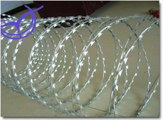 Razor barbed types: Straight Type Razor Wire, Concertina Single Razor Wire, Concertina Cross Razor Wire and Flat Razor Wire.