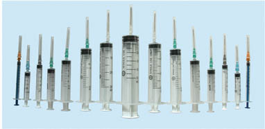 transparent barrel and plunger with black rubber piston , nozzel central or eccentral with colour-code hub hypodermic needle