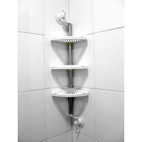 Specification: Adjustable metallic pole with three shelves and two hooks. The plastic part of the whole set are made of PVC.