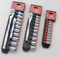 Our anti-thief socket display pack has various options: with or without ratchet and extension bar. 1/4", 3/8" and 1/2" socket studs are available. Loading length from 125mm to 300mm, suit all kinds of assortments.