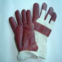 Furniture leather glove, patch palm, russet color, white cotton back and cuff, full pile lining, size:9.5�(design optional)