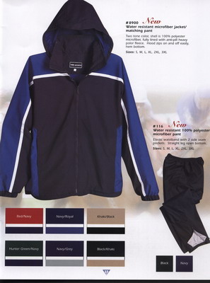 Two tone color, shell is 100% polyester microfiber, fully lined with anti-pill heavy polor fleece. Hood zips on and off easily, hem bottom.
