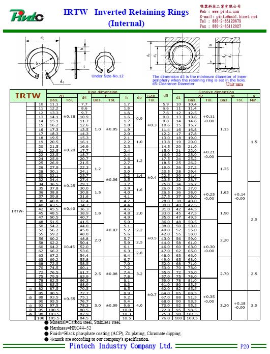 All kind of the retaining rings, including the basic, inverted, beveled, for internal or external use, and some E-type, C-type, U-type, Grip type for all kind of shaft or hole use, meet JIS B2804, JIS B2805 specifications, with full level stock, both in metric size and inch size can real time supply.