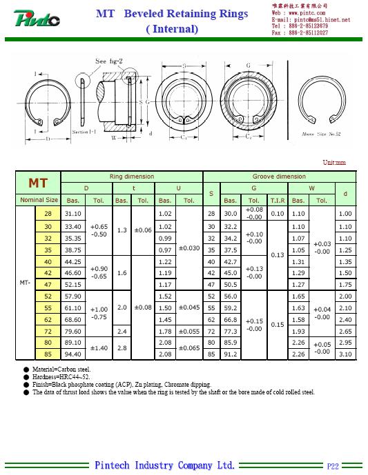 All kind of the retaining rings, including the basic, inverted, beveled, for internal or external use, and some E-type, C-type, U-type, Grip type for all kind of shaft or hole use, meet JIS B2804, JIS B2805 specifications, with full level stock, both in metric size and inch size can real time supply.