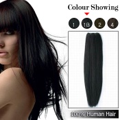 Hair Type: 100% Salon quality Remy Human HairHair Style: Silky StraightHair Length: 18"Color:Natural Black #1BSet Weight: 90g per set,one set is enough for a full headApplication Time: 3 minutes (appr ... ...