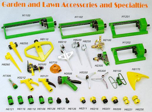 lawn & garden equipment and accessories, zinc bathroom accessories and plumbing specialties.